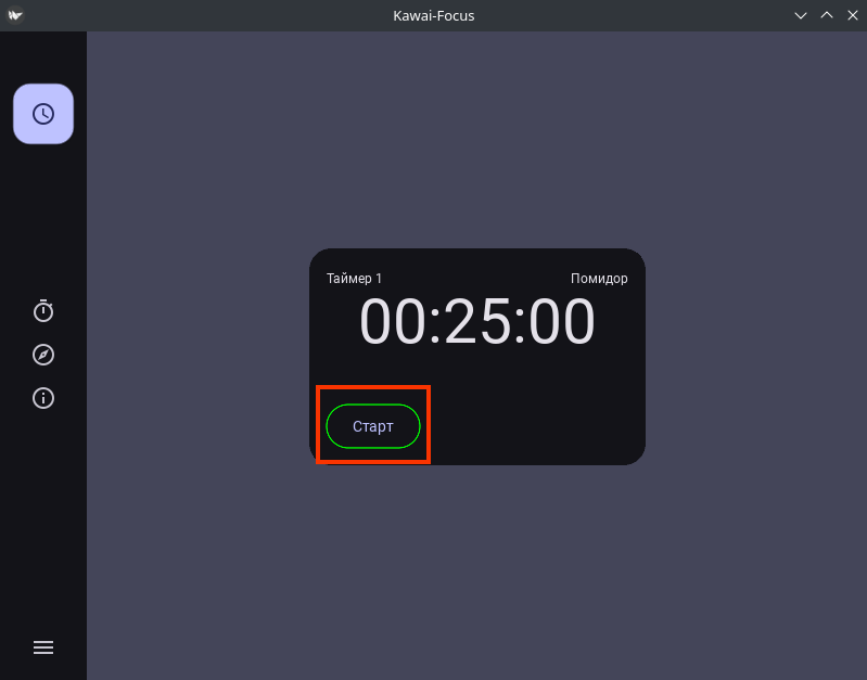 Для запуска таймера нажимаю на кнопку «Старт».
