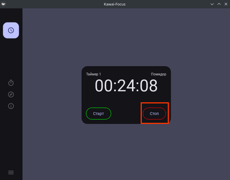 После нажатия на кнопку «Пауза» появилась кнопка «Старт», с помощью которой можно продолжить воспроизведение. Однако я нажму на кнопку «Стоп» для полного сброса и остановки таймера.
