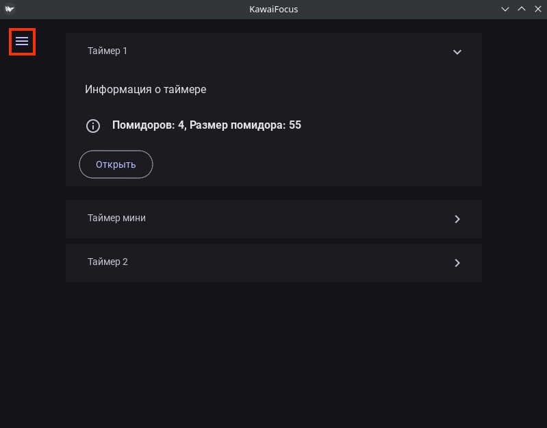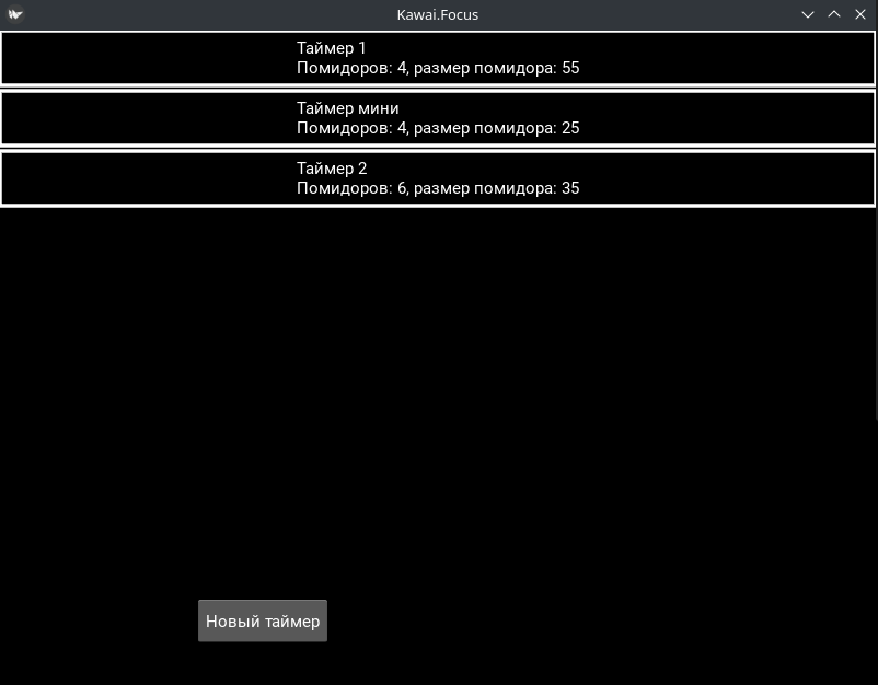 Сегодня же я перехожу от теории к практике. Начну с экрана «Таймеры», в который пользователь попадает сразу после запуска приложения Kawai.Focus