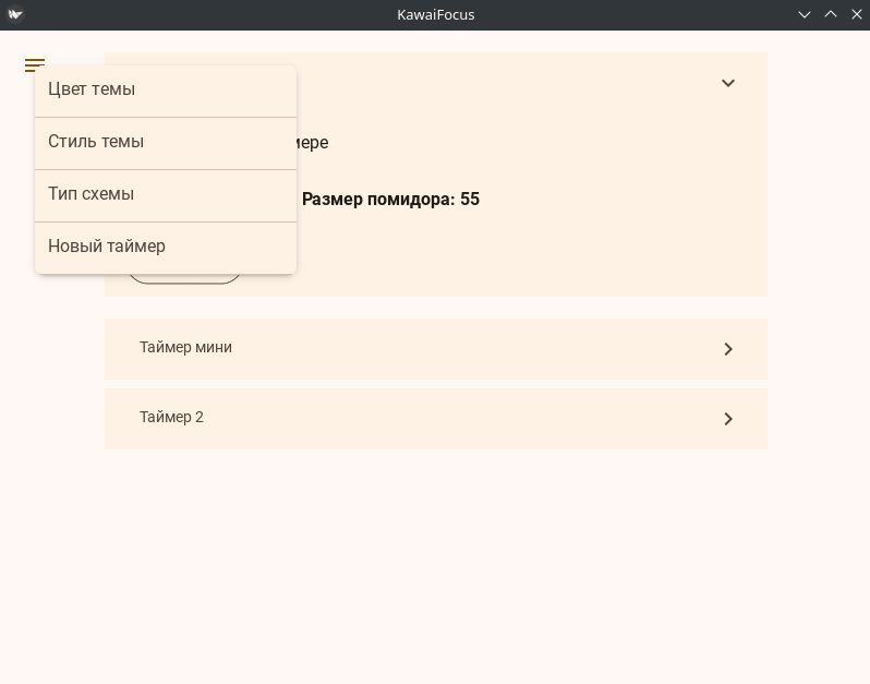 Я начну с изменения дизайна экрана «Таймеры», в который пользователь попадает сразу после запуска приложения Kawai.Focus