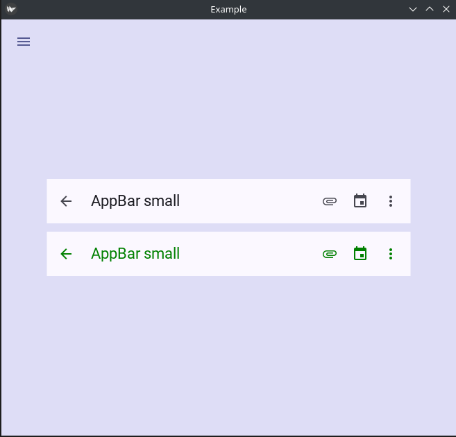 О данном образце я уже писал в статье KivyMD 2.0.0 — путеводитель по Material Design для Kivy, в которой я делал путеводитель по Material Disign в Kivy. AppBar нужен для того что-бы убрать на неё кнопки навигации. В эту панель можно поместить иконку гамбургер, которая выглядит как три вертикальных полоски в левом верхнем углу экрана. На данный момент иконка гамбургер хранит настройки тем.